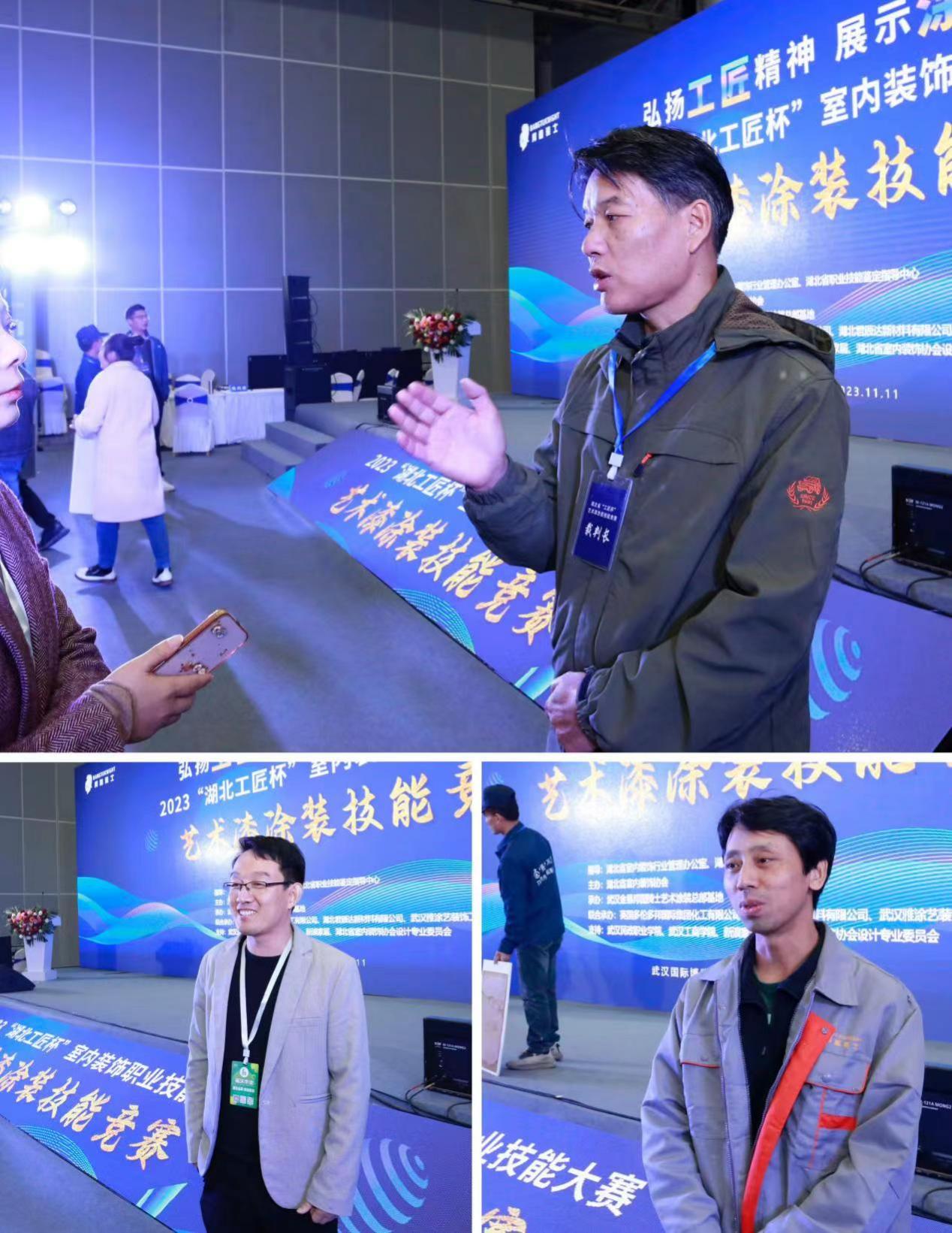 比賽結(jié)束后,參賽選手代表和裁判長(zhǎng)均接受了新浪家居的采訪。裁判長(zhǎng)丁少云對(duì)于此次比賽作品的表現(xiàn)較為滿意,看到了不少用心制作的優(yōu)秀作品,希望選手能有更多像這樣發(fā)揮特長(zhǎng)的機(jī)會(huì),快速縮短湖北藝術(shù)漆與沿海地區(qū)的差距。新浪家居驗(yàn)房團(tuán)驗(yàn)房師劉巖、邦圖騎士藝術(shù)漆涂裝師魏東陽(yáng)賽后均發(fā)表了感言,藝術(shù)漆的需求越來(lái)越大,所以參加此次比賽的意義重大,一方面可以與同行互相切磋學(xué)習(xí),提高自身的技能,另一方面通過(guò)大賽能更好地推廣藝術(shù)漆,提高藝術(shù)漆的知名度。