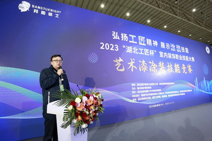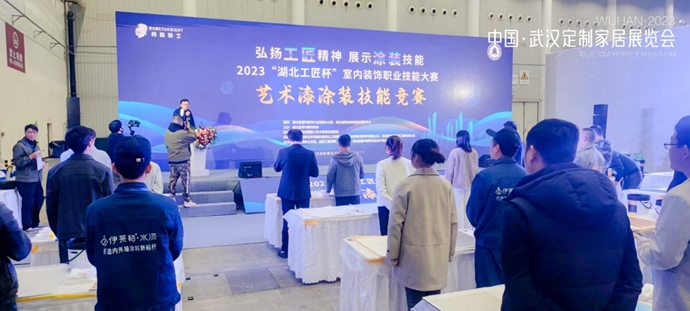11月11日,2023“湖北工匠杯”室內(nèi)裝飾職業(yè)技能大賽藝術(shù)漆涂裝技能競(jìng)賽在武漢國(guó)際博覽中心2023武漢定制家居展上成功舉辦,該賽事為“湖北工匠杯”室內(nèi)裝飾職業(yè)技能大賽的首次實(shí)操類(lèi)競(jìng)賽,近50名專(zhuān)業(yè)選手涂裝選手積極參賽,打造了藝術(shù)漆涂裝行業(yè)專(zhuān)業(yè)化、高質(zhì)量競(jìng)技平臺(tái)。